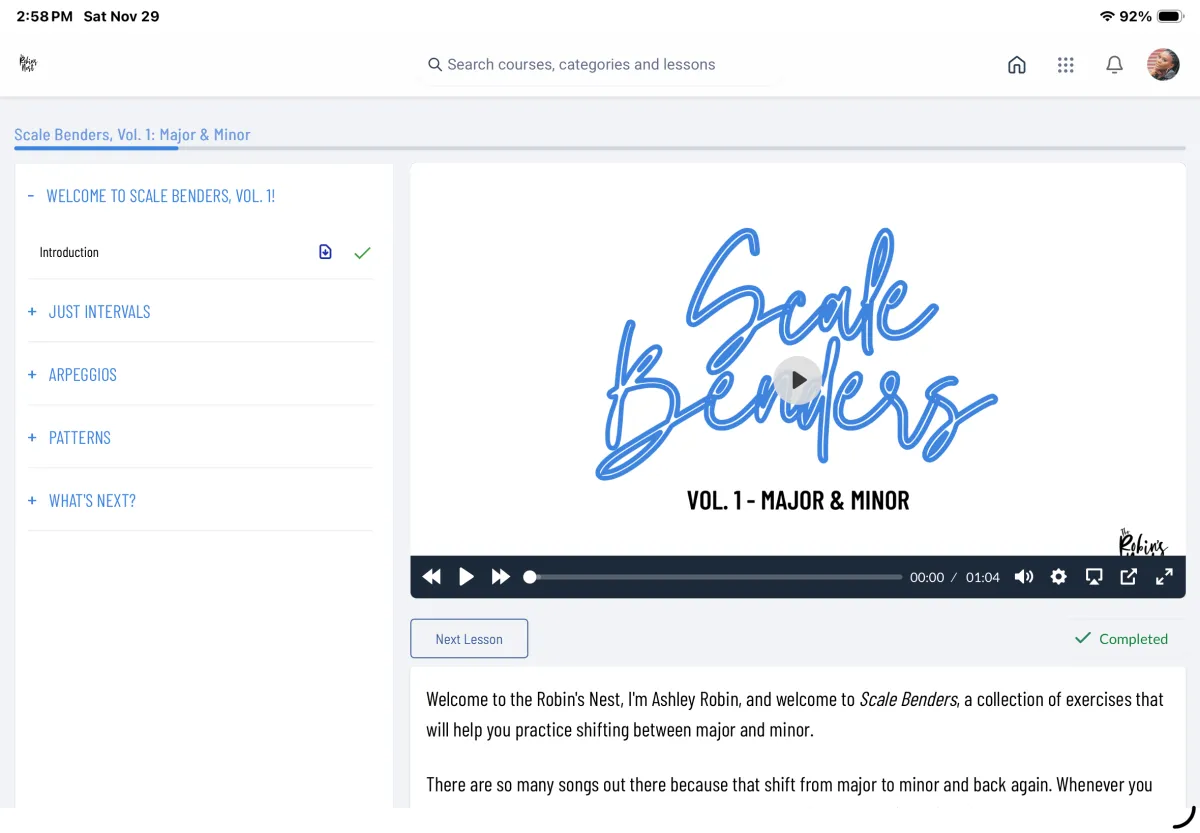Ashley Robin got her start in teaching in 2011, and she’s since had the pleasure and privilege of teaching students across the United States and abroad. In recent years, she’s developed a name for herself as an ear training and musicianship coach. She is best known for her content surrounding the modes of the major scale, but also teaches general ear training, vocal technique, performance technique, songwriting, arranging, and production via her self-owned virtual academy, The Robin’s Nest.